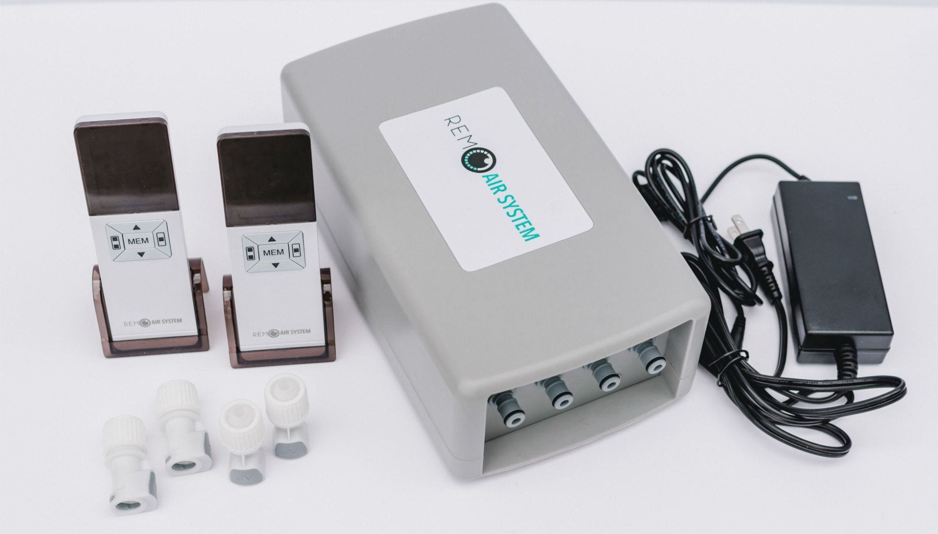 REM Air Systems, the trusted name in air mattress replacement pumps. New and Improved 4 VALVE sleek designed Wireless replacement air pump designed to work with both single-chamber and dual-chamber air beds. 4 Valve System is made for 2 zone air compression for increased total comfort. However, it will also work with air mattresses that have the usual single air zone. (the single air zone falls in line with the majority of air mattress chambers) Two wireless remote controls both chambers and has large digital readout. Simple one-button auto fill mode for easy operation. In addition to having a heavy duty motor it also boasts new technology that reduces noise and is more quiet when compared to other models during compression. This pump is compatible with your Select Comfort™ orSleep Number™ beds. This product comes with: pump, TWO wireless remote (controls both Left and Right side of bed), a power source and TWO sets of Quick-lock connectors. Hoses are not included.